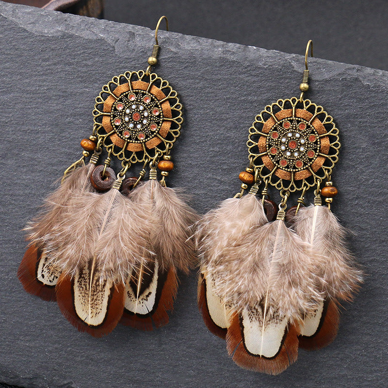 Feather round hollow retro earrings