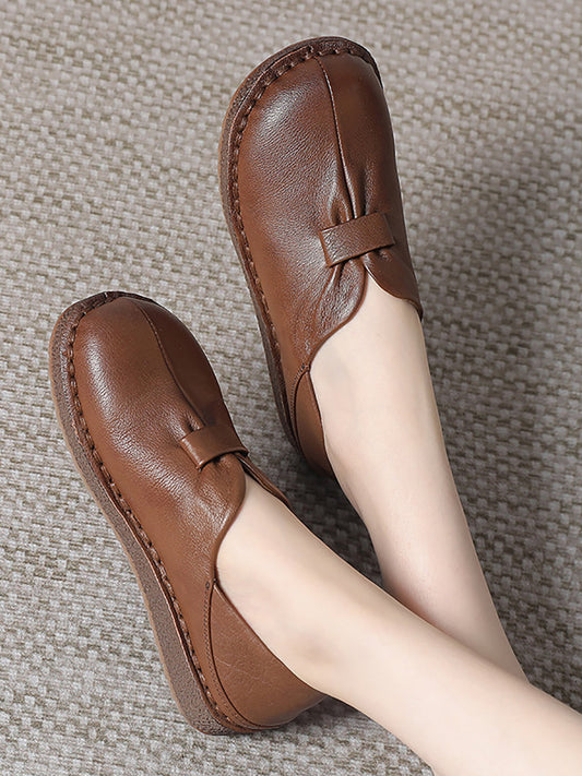 Women Autumn Leather Spliced Strap Flat Shoes