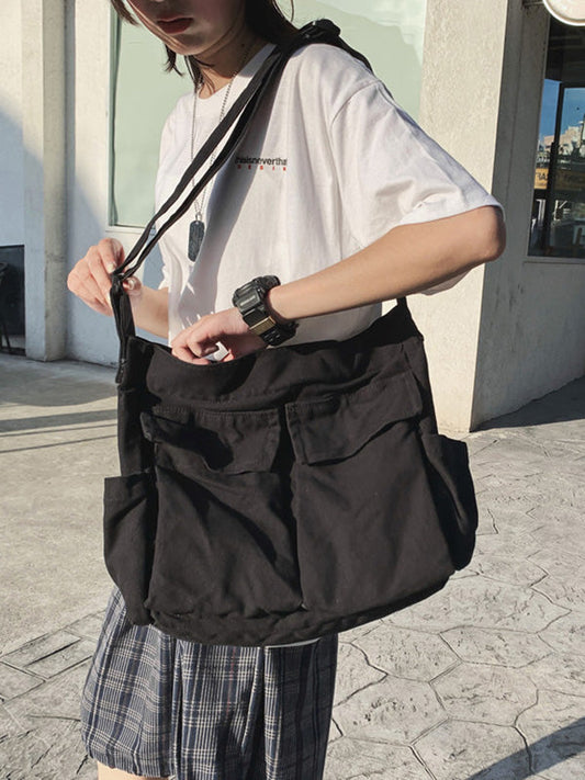 Casual Solid Denim Large Capacity Crossbody Bag