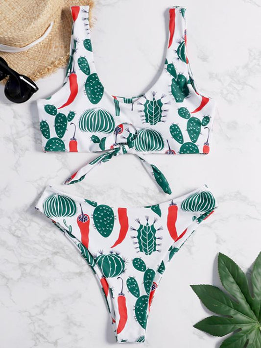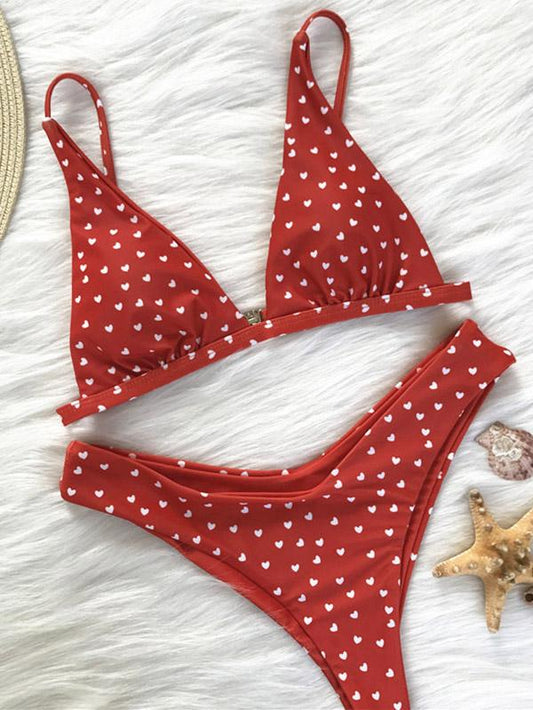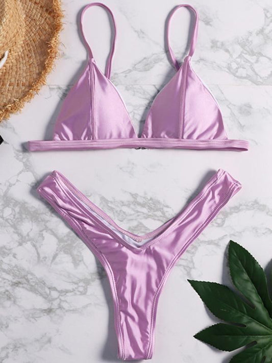Plain Ruffle Top With Stripe Panty Bikini Set