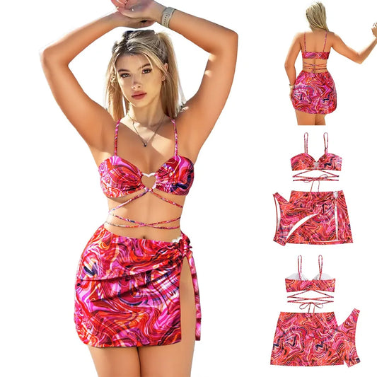Women's Elegant Printing 3 Pieces Set Bikinis Swimwear