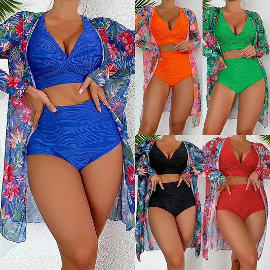 Women's Sexy Flower 3 Pieces Set Bikinis Swimwear