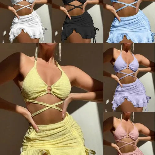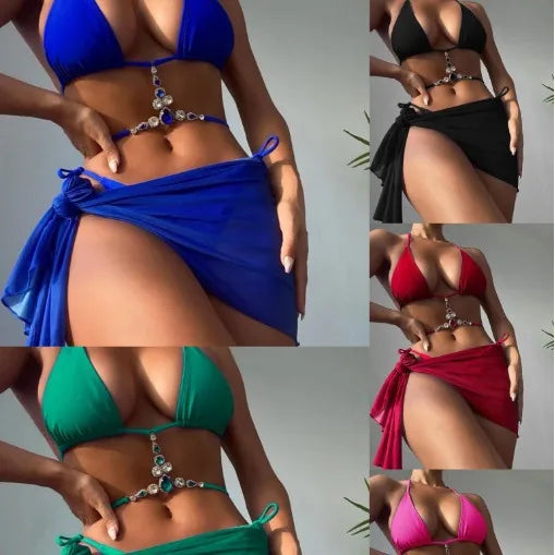Women's Sexy Solid Color 3 Pieces Set Bikinis Swimwear