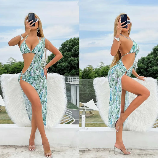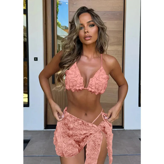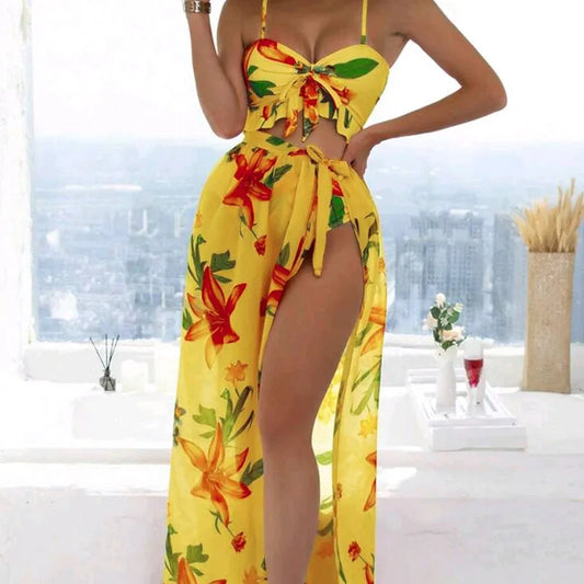 Women's Sexy Flower 3 Pieces Set Bikinis Swimwear