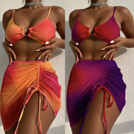 Women's Sexy Gradient Color Solid Color 3 Pieces Set Bikinis Swimwear