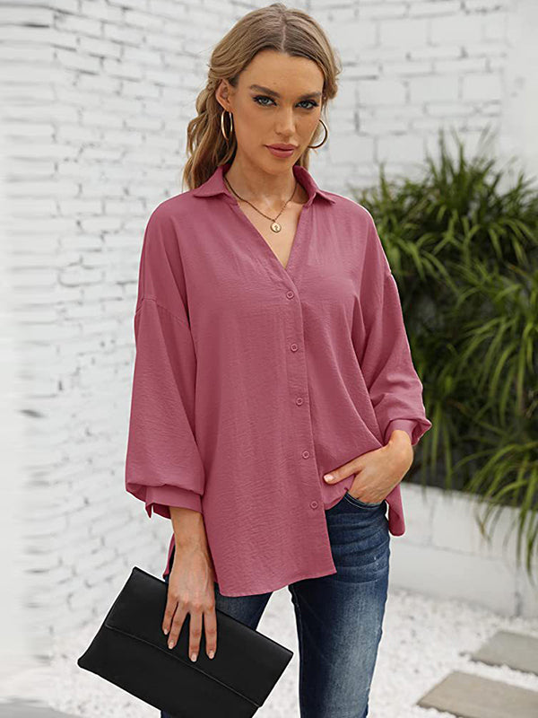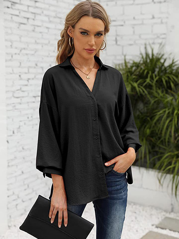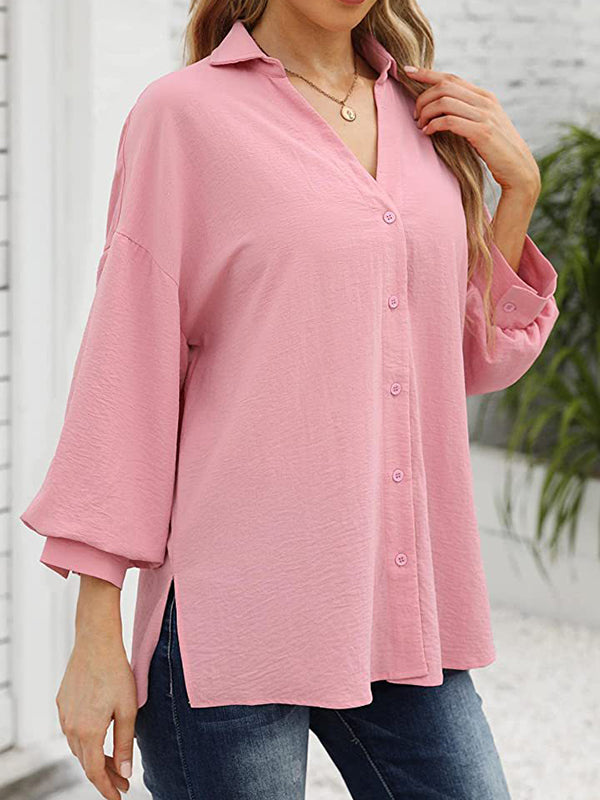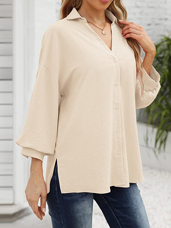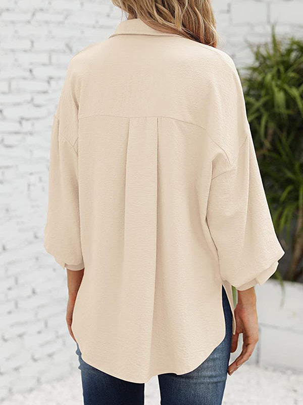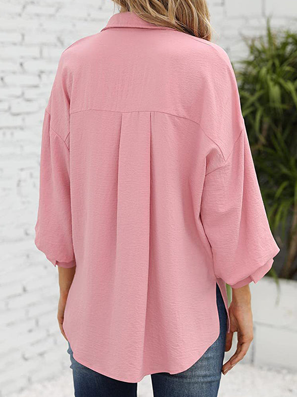 Loose Puff Three-Quarter Sleeves Solid Color Lapel Blouses