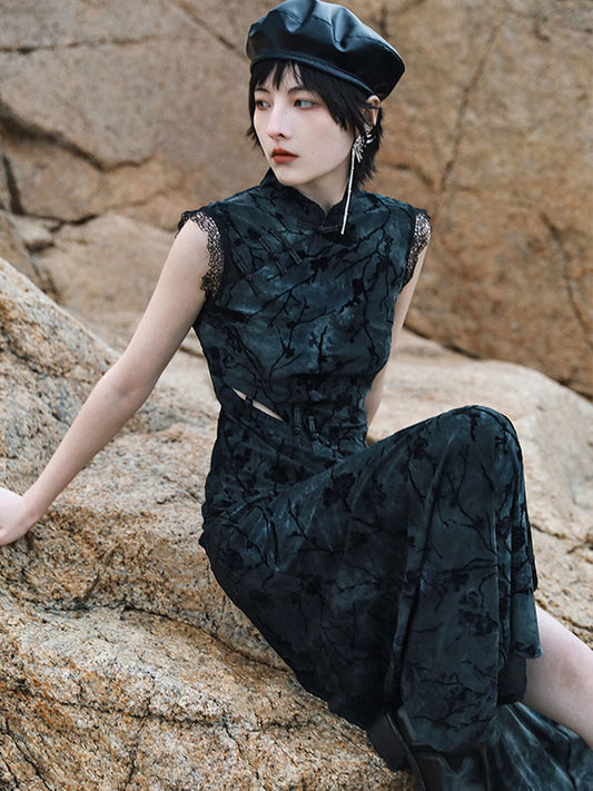 Artistic Retro Plaid Stand Collar Long Cheongsams Dress