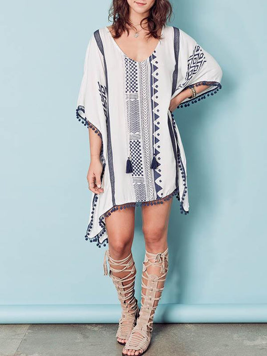 Bohemia V-neck Batwing Sleeves Cover-Ups Tops
