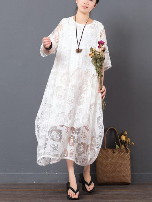 Original Casual Loosen Cotton Long Dress in Red and White Colors