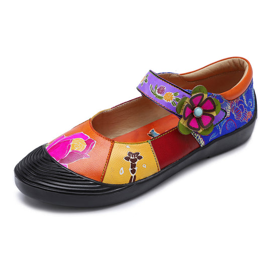 Outdoor all leather hand retro contrast soft flat shoes
