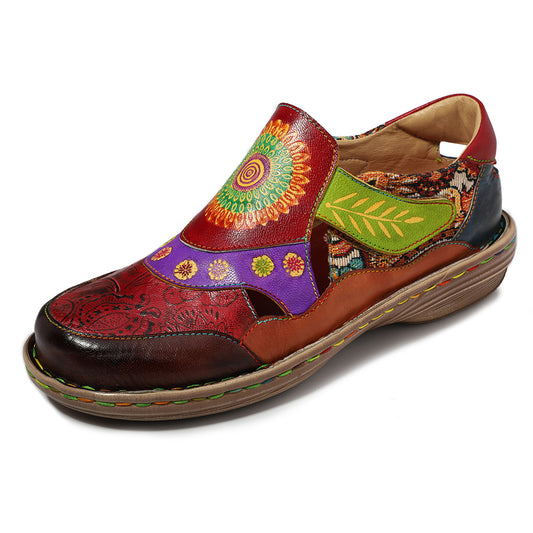 Leather flower pattern retro Ping sandals