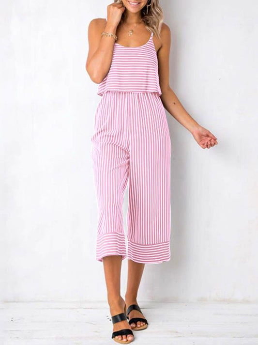 Sleeveless Wide Leg Solid Color Spaghetti-Neck Jumpsuits