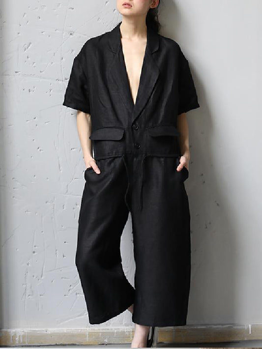 Simple Solid Color Lapel Short Sleeve Jumpsuits