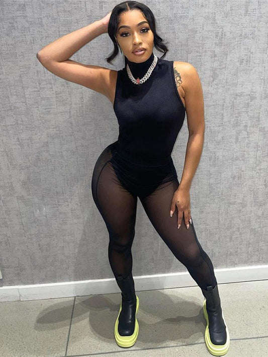 Casual Solid Color Round-Neck Sleeveless Wide Leg Jumpsuits