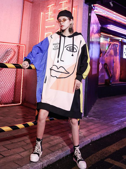 LOOSE PRINTED CONTRAST COLOR HOODIE OUTWEARS