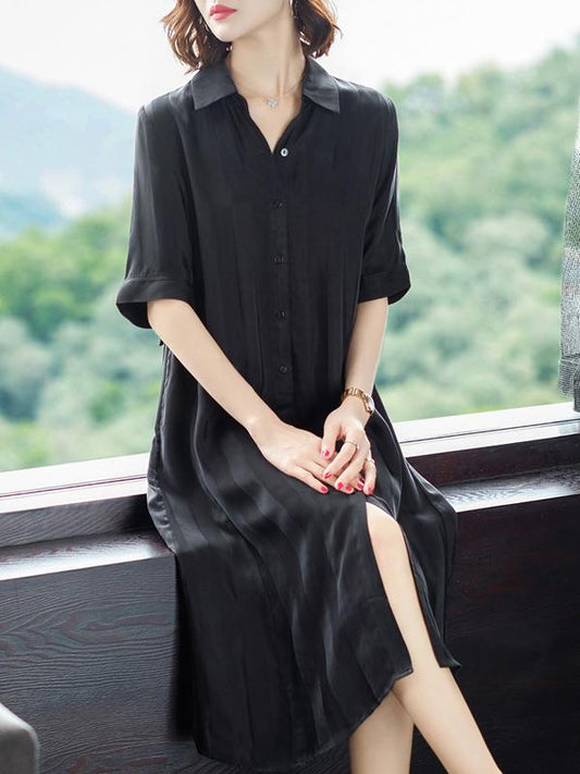Casual Striped Single-breasted Shirt Dress