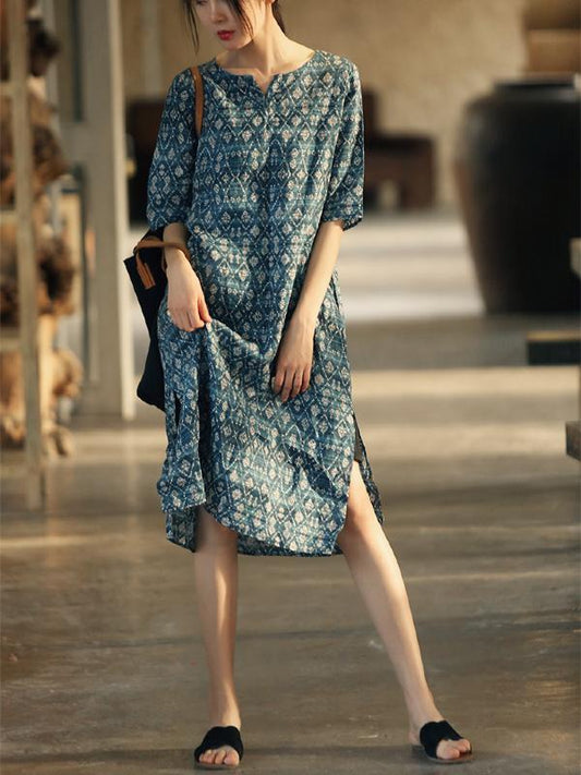 Casual Printed Long Shirt Dress