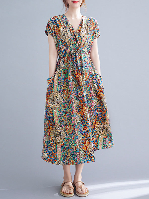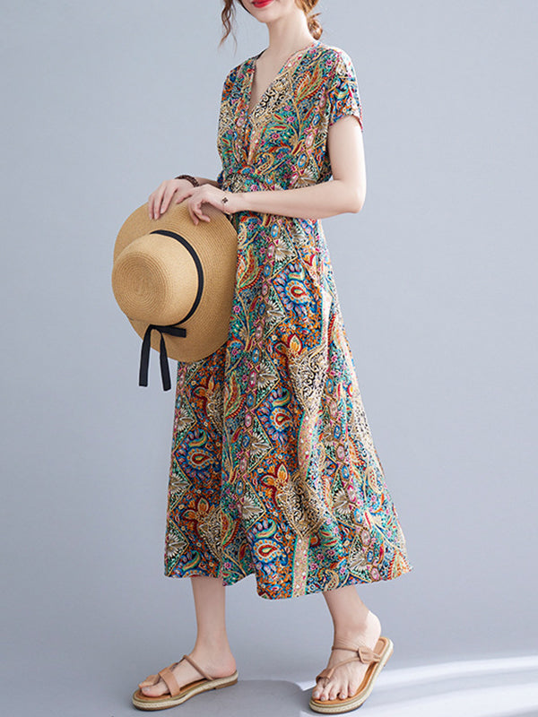 Original Artistic Retro Loose Floral Printed Vacation Midi Dress