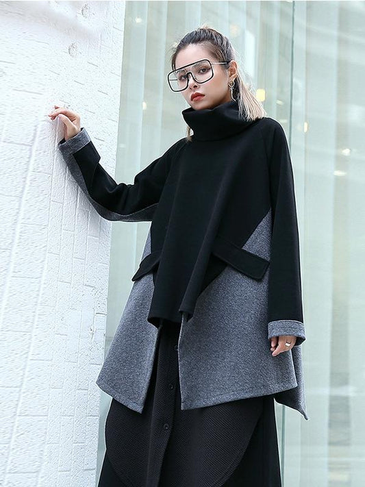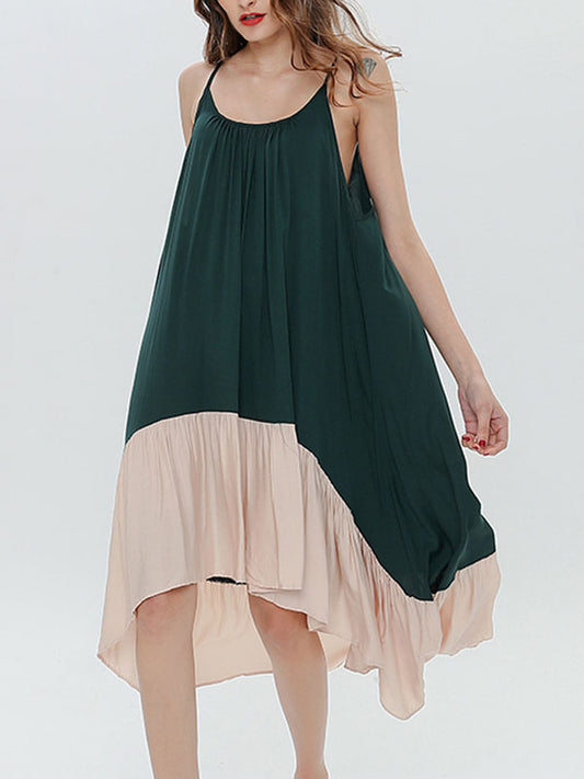 Loose Contrast Color Muslim Split-Joint V-neck Cover-Ups Tops Muslim Abaya