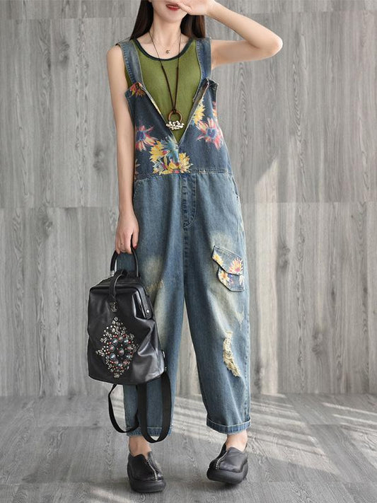 High Waisted Loose Solid Color V-Neck Jumpsuits