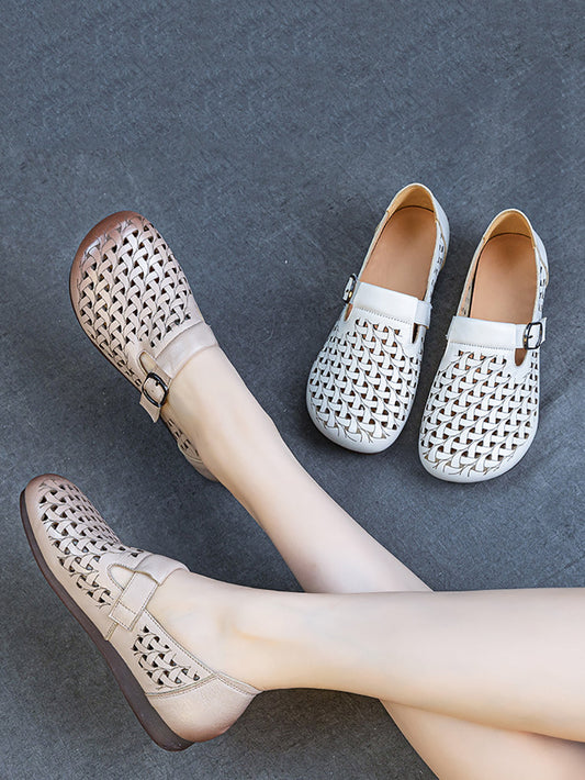 Women Autumn Genuine Leather Spliced Strap Flat Shoes