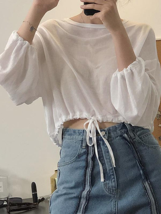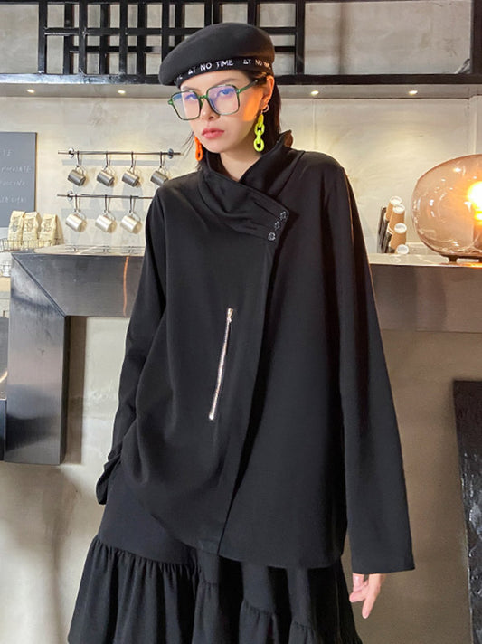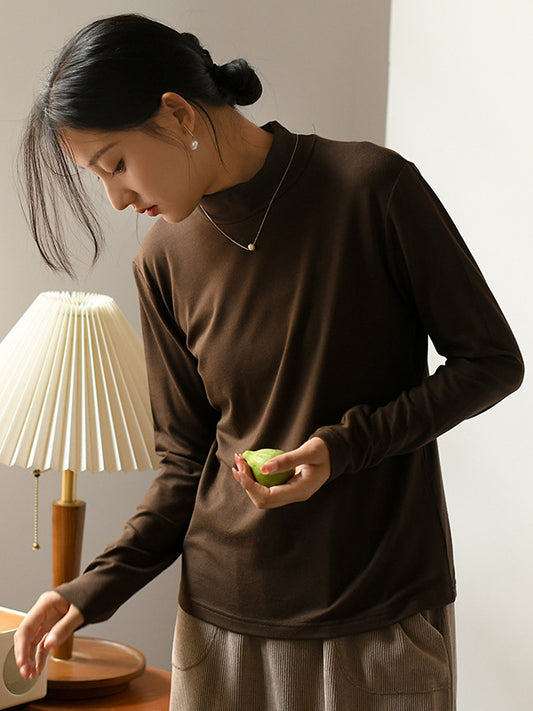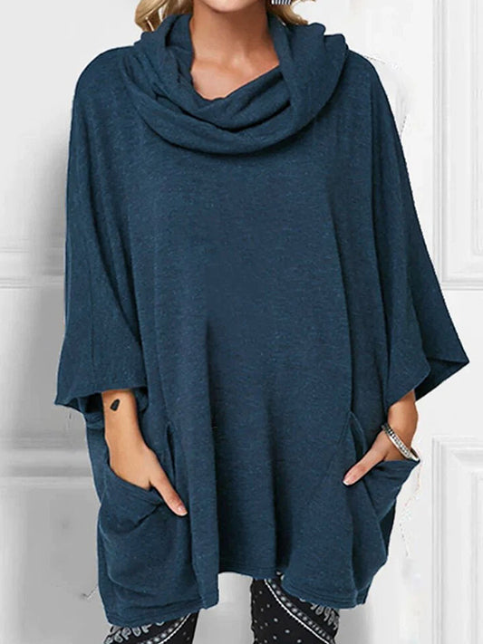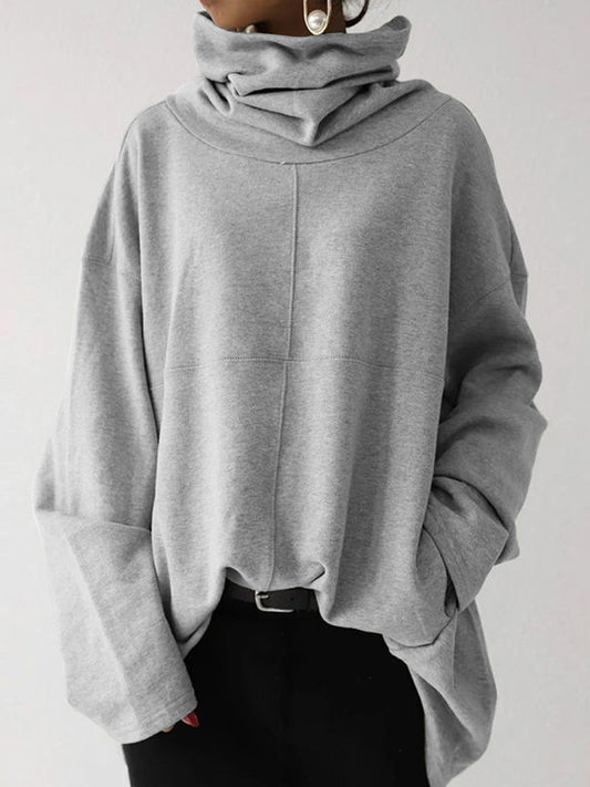 Casual Loose Solid Color Heaps Collar Long Sleeves T-Shirt Tops