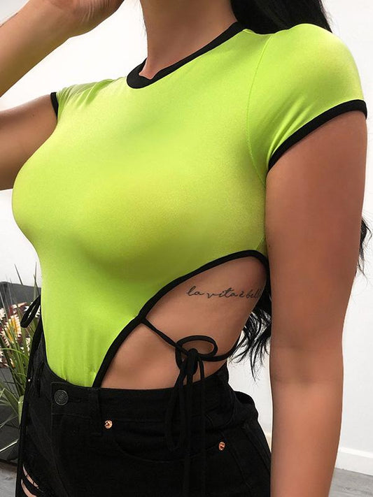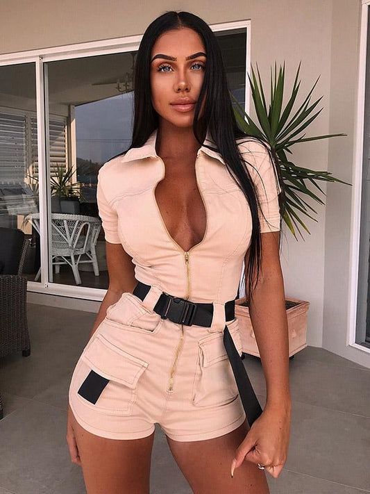 Patchwork Zipper Short Sleeves Yoga Jumpsuits
