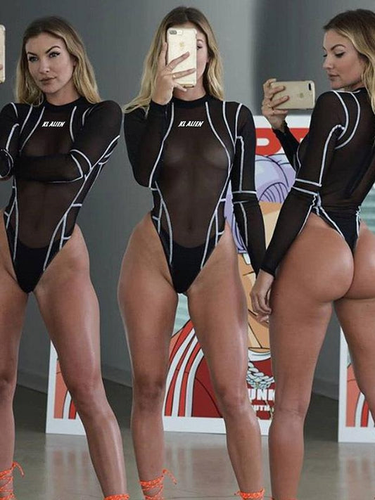 Sexy See-through Split-joint Long Sleeves Bodysuit