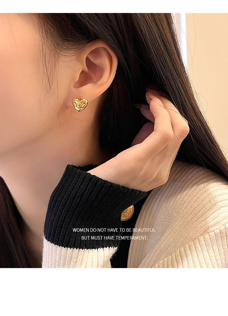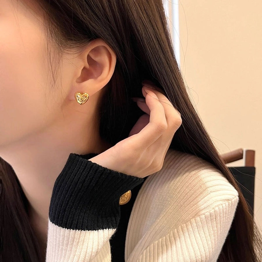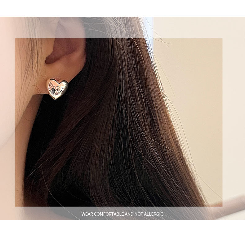 1 Pair 925 Sterling Silver 925 Sterling Silver Earrings Heart Shape Ear Studs