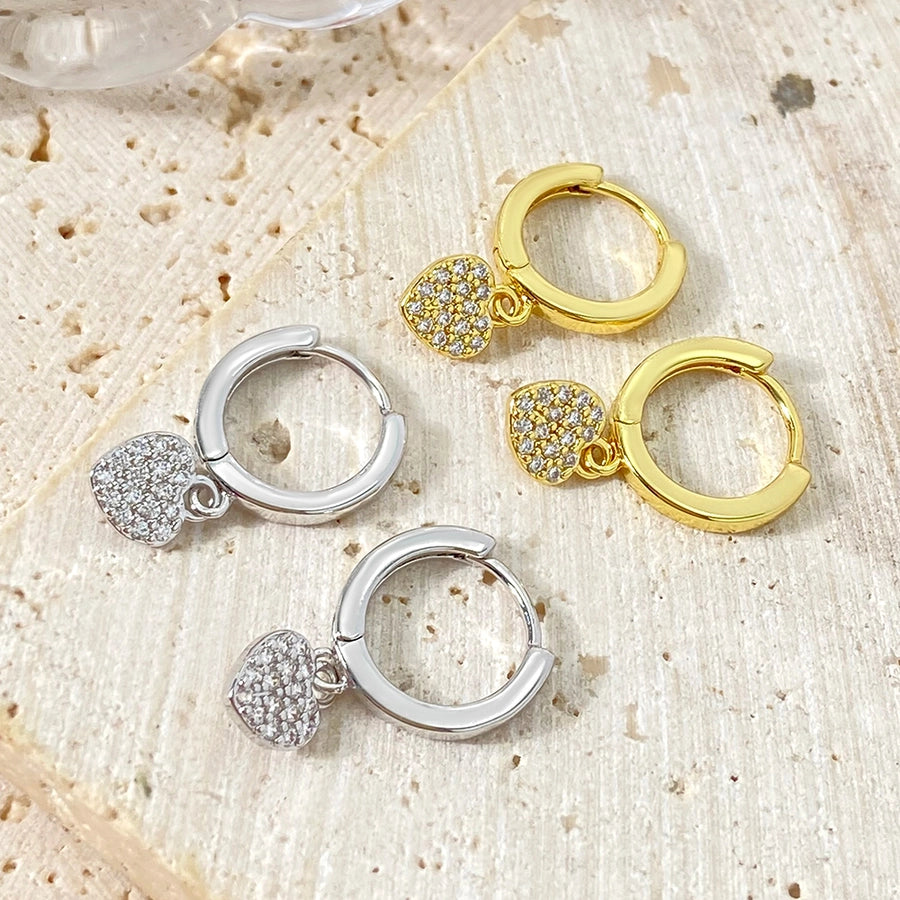1 Pair Sweet Heart Shape Inlay Brass Zircon Drop Earrings