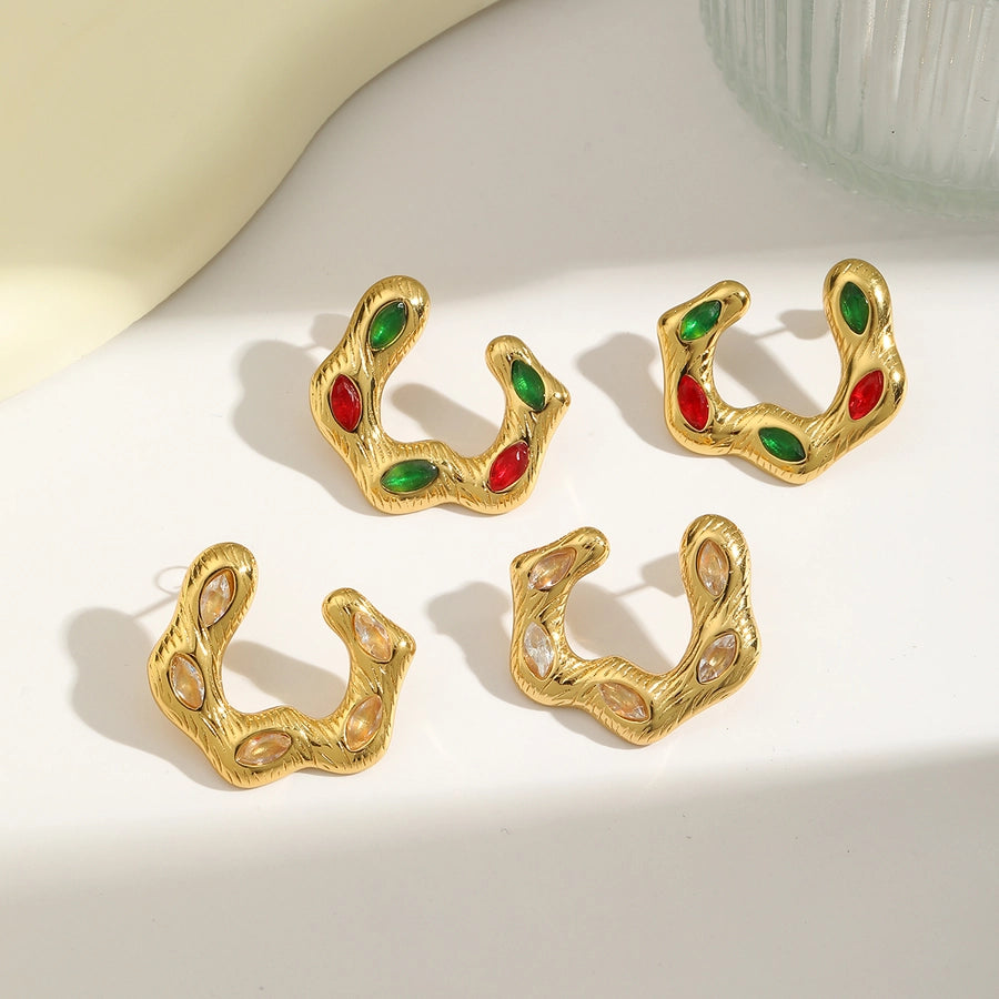 1 Pair Vintage Style Classic Style C Shape Inlay 304 Stainless Steel Zircon 18K Gold Plated Ear Studs