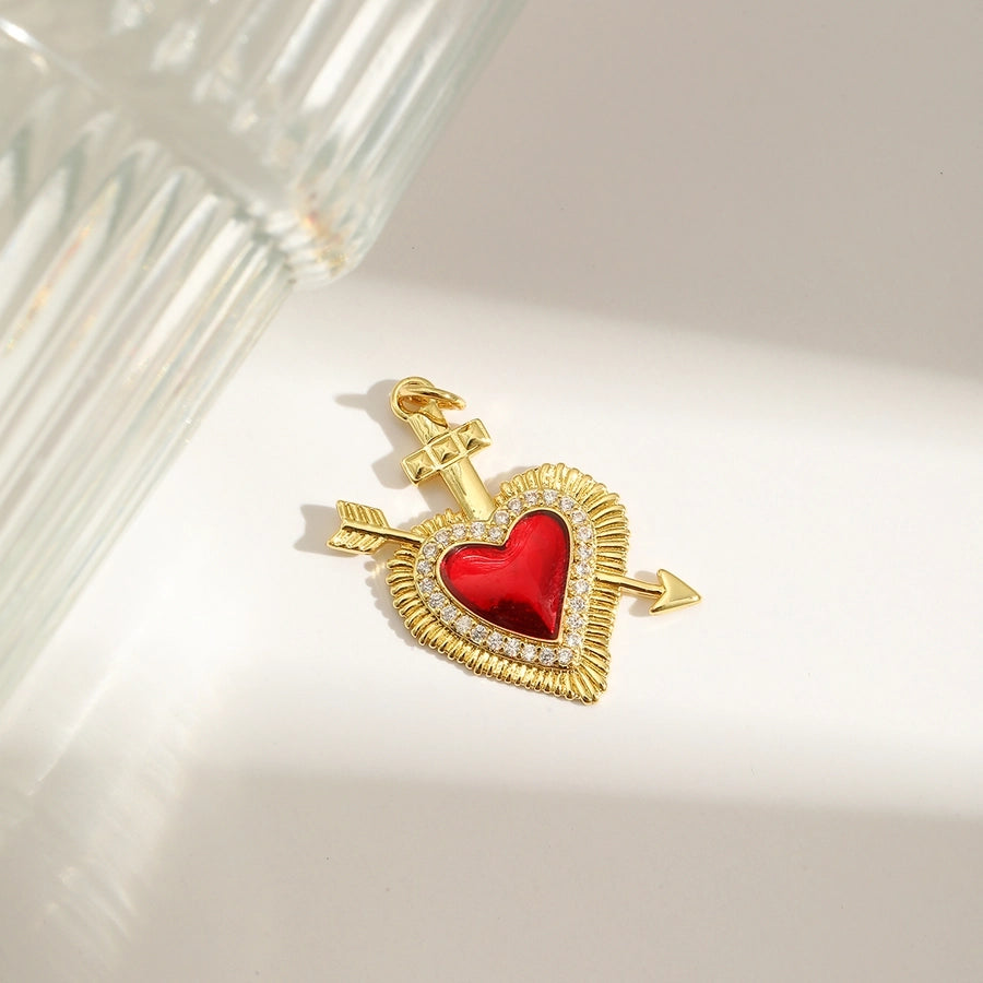 1 Piece 25.3*30.3MM Hole 3~3.9mm Copper 18K Gold Plated Heart Shape Pendant Jewelry Accessories