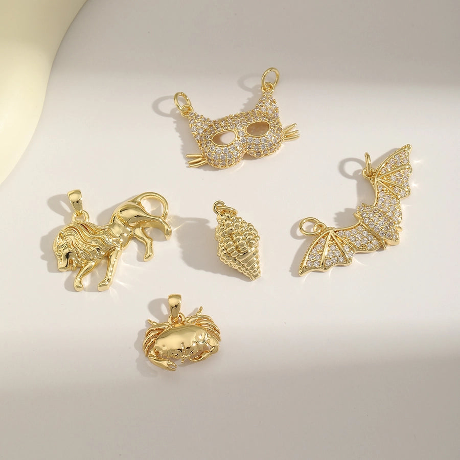 1 Piece 26.8MM Hole 3~3.9mm Copper Zircon 18K Gold Plated Lion Bat Mask Pendant Jewelry Accessories