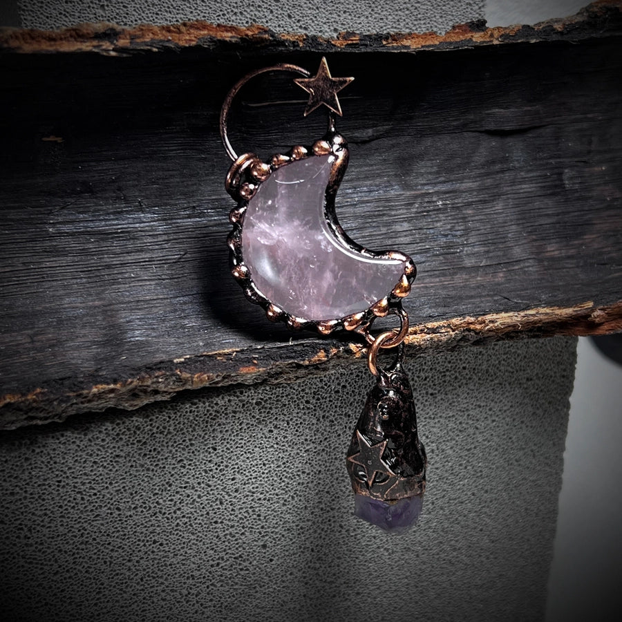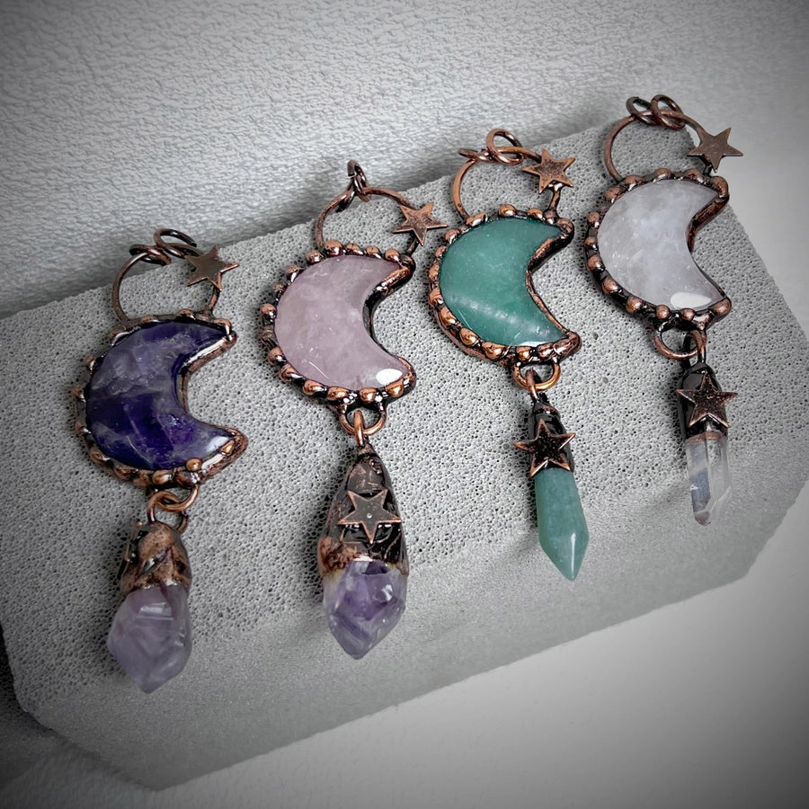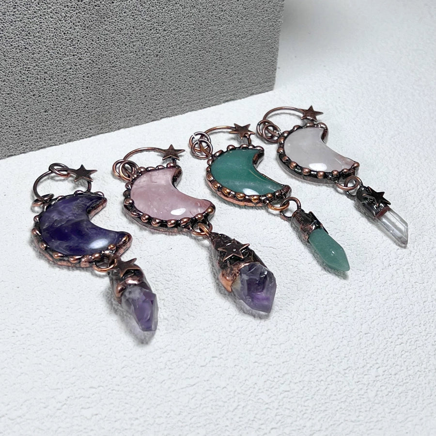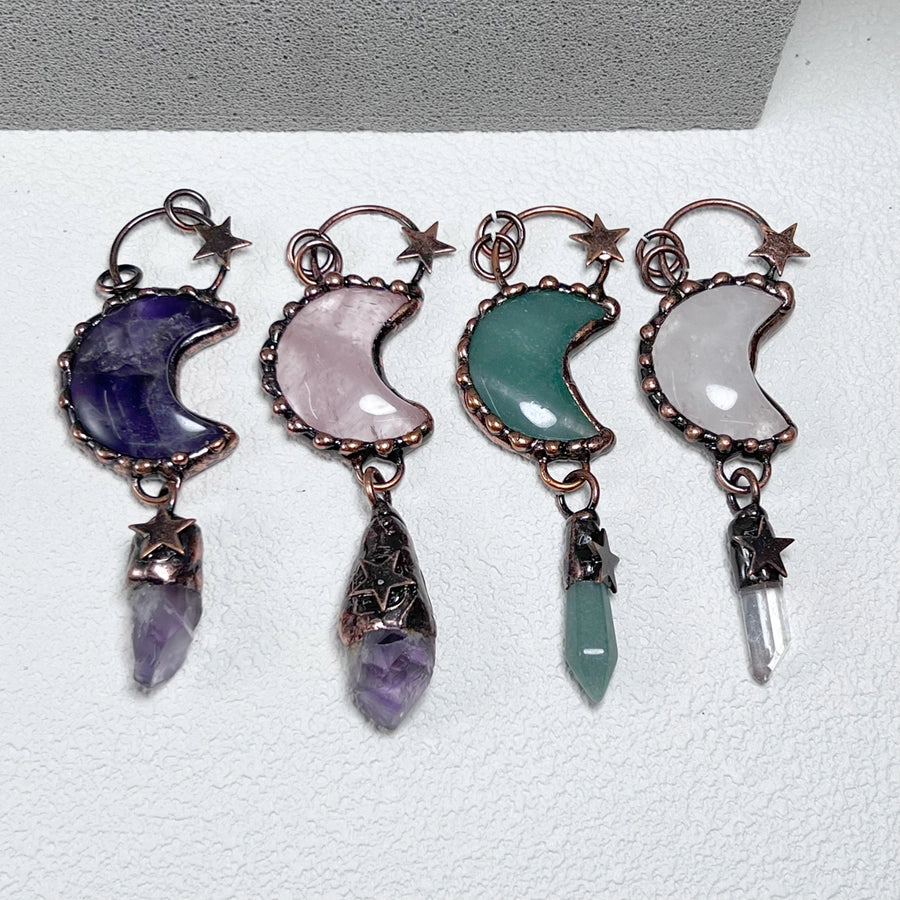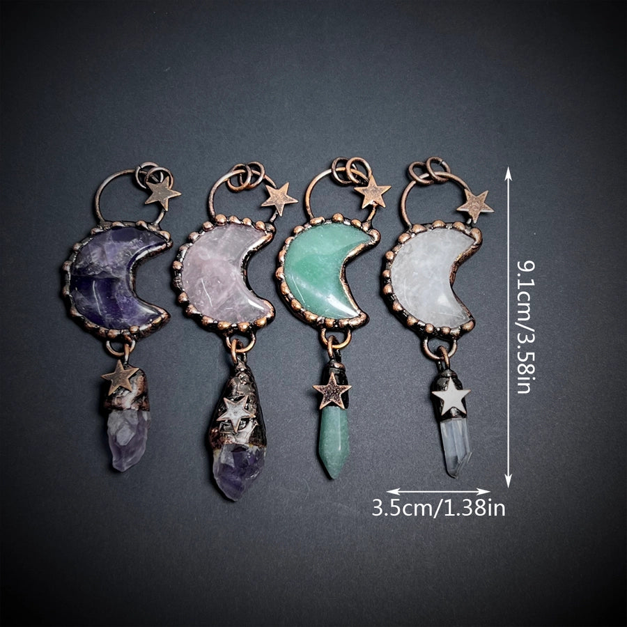 1 Piece 35*91mm Crystal Green aventurine Natural Stone Crystal Star Moon Pendant Jewelry Accessories
