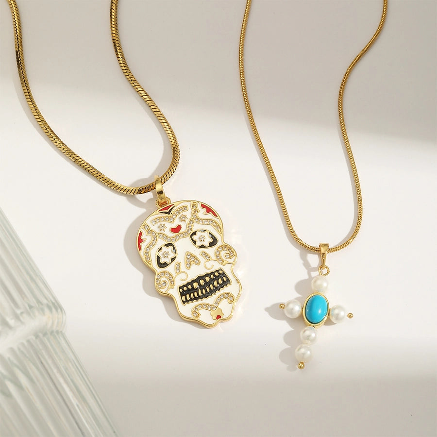 1 Piece Hole 1~1.9mm Copper 18K Gold Plated Cross Skull Polished Pendant Chain Jump Ring Jewelry Accessories