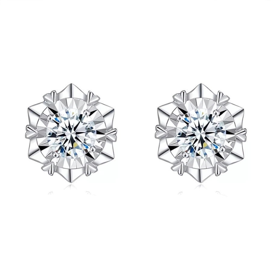 1PC Snowflake Style Luxurious Colored Moissanite Diamond with S925 Silver Stud Earrings, Luxurious and Elegant Quality Stud Earrings, Best Gift for Women Or Valentine's Day and Wedding Engagement Jewelry Brides