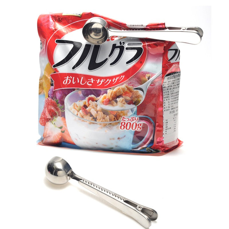 2 in 1 Stainless Steel Coffee Scoop With Bag Clip Coffee Kitchen Gadgets