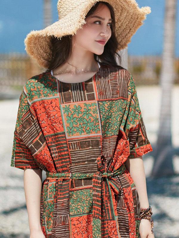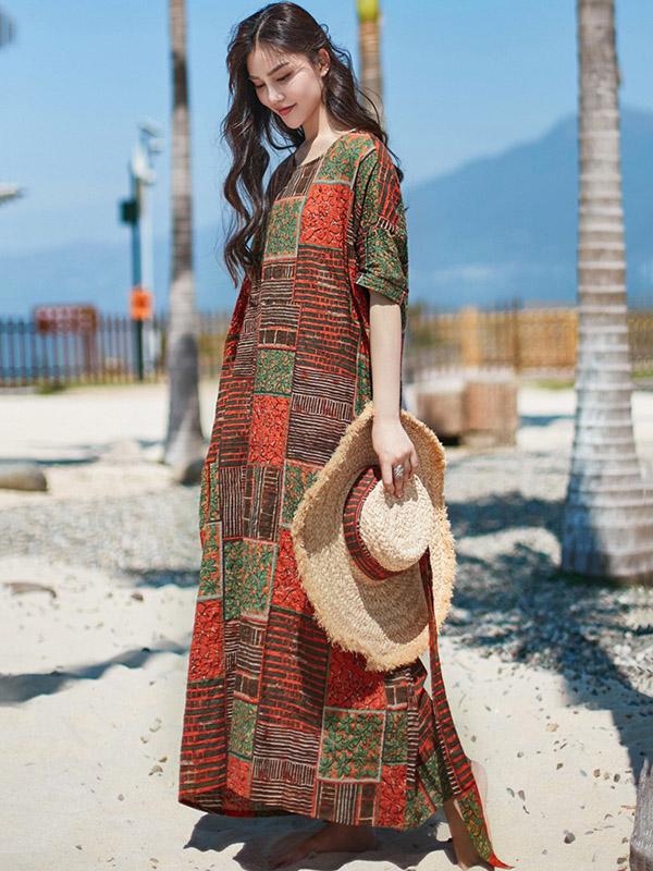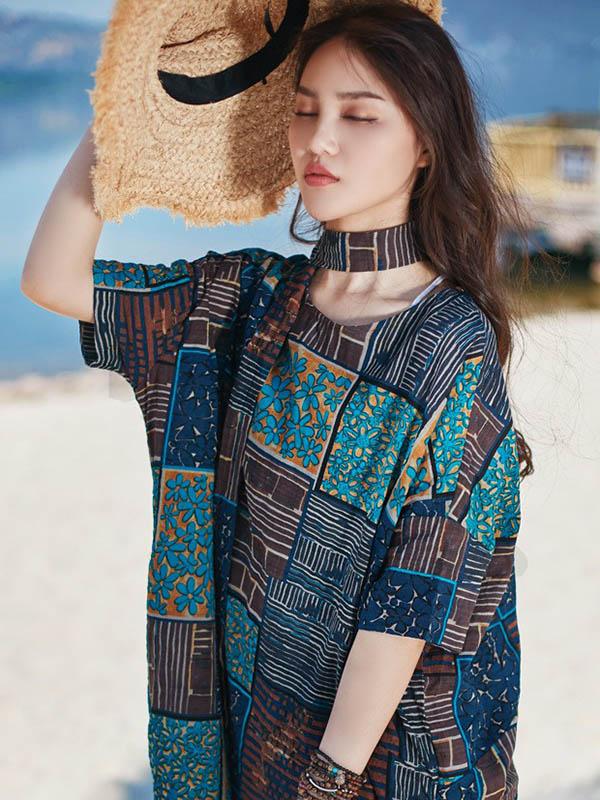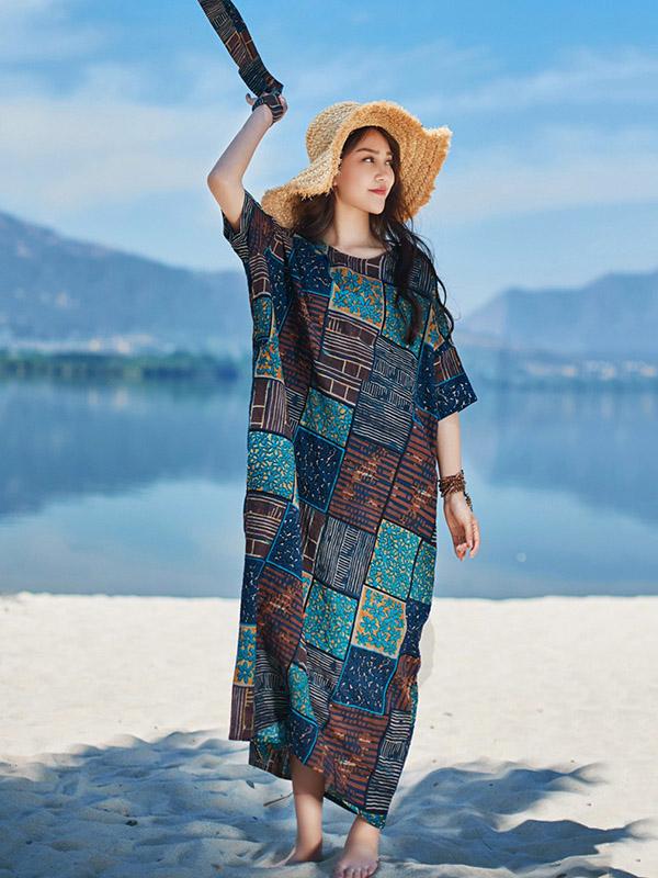 2019 Summer New Original Fashion Loose Oversize Bamboo Hemp Maxi Dress