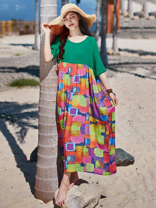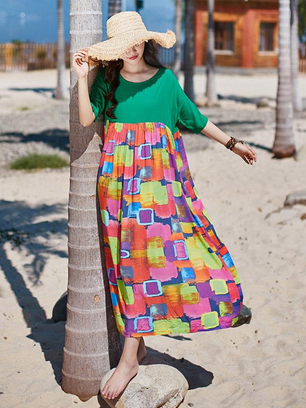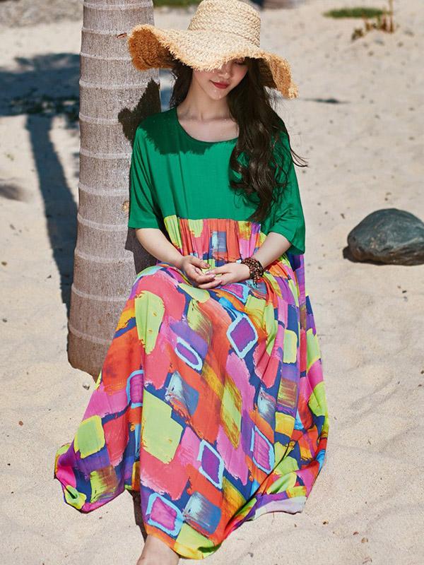 2019 Summer New Original Fashion Loose Split-joint Maxi Dress