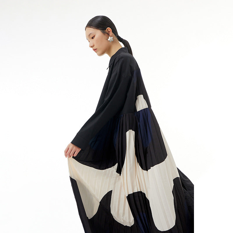 Oversized women's colorful floral pleated skirt with loose and thin temperament