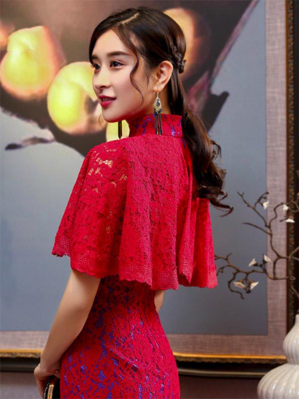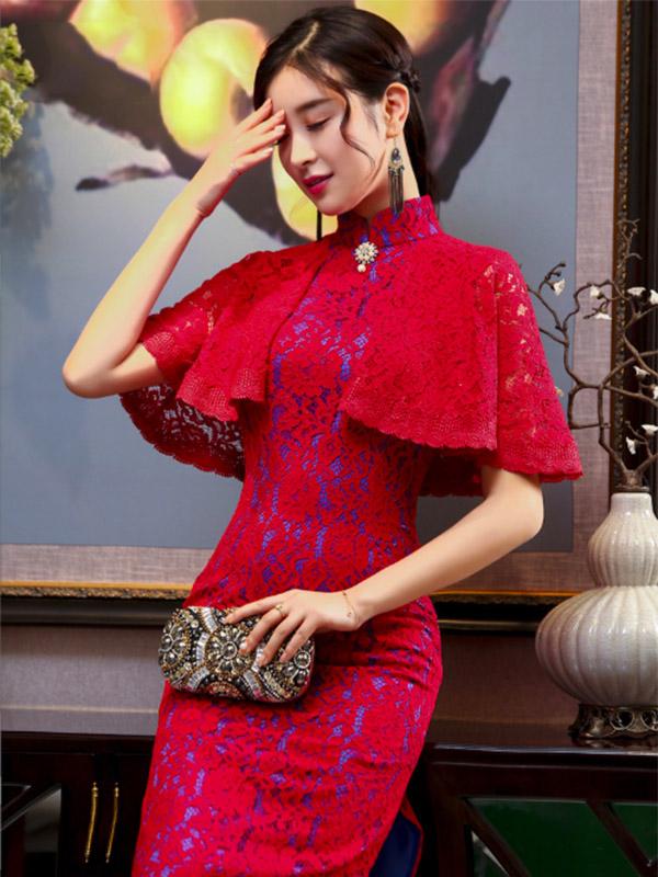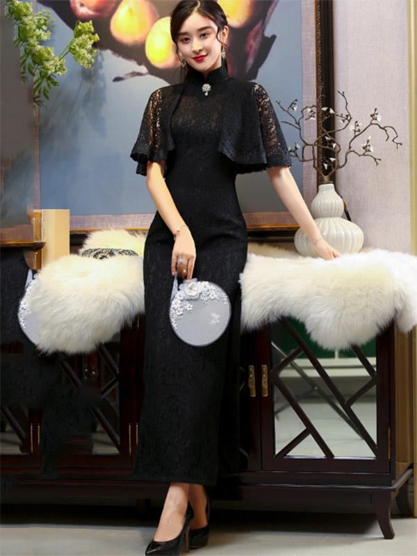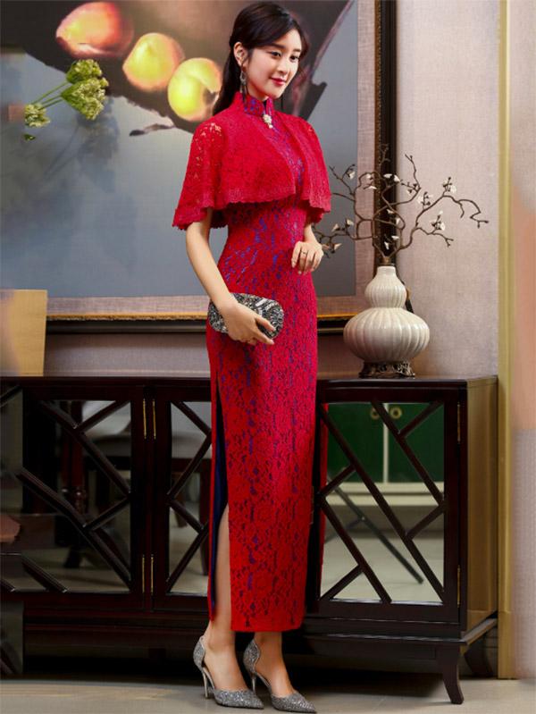 3 Colors Banquet Lace Split-side Long Cheongsam