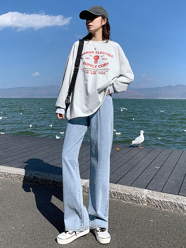 3 Colors Simple High Waisted Wide Leg Jean Pants Bottoms
