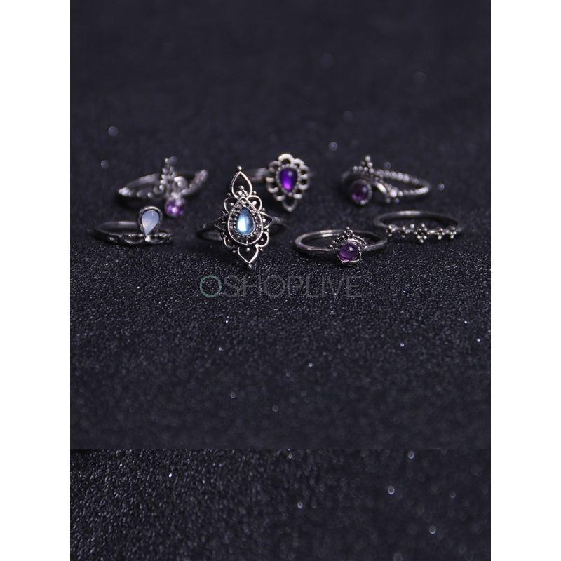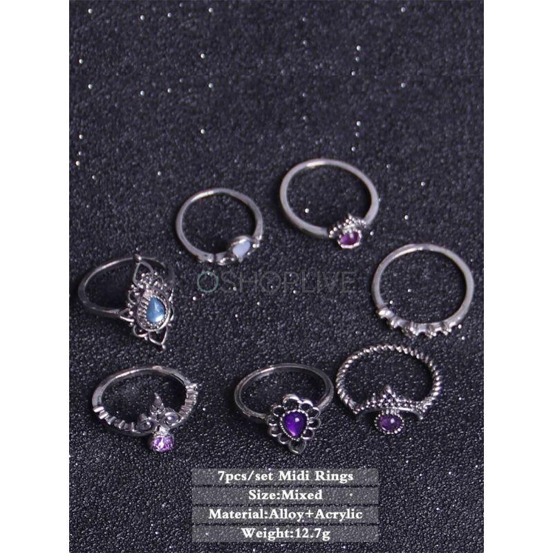 3 Sets 7pcs Vintage Carved Hollow Rings Accessories