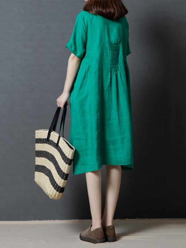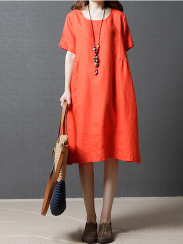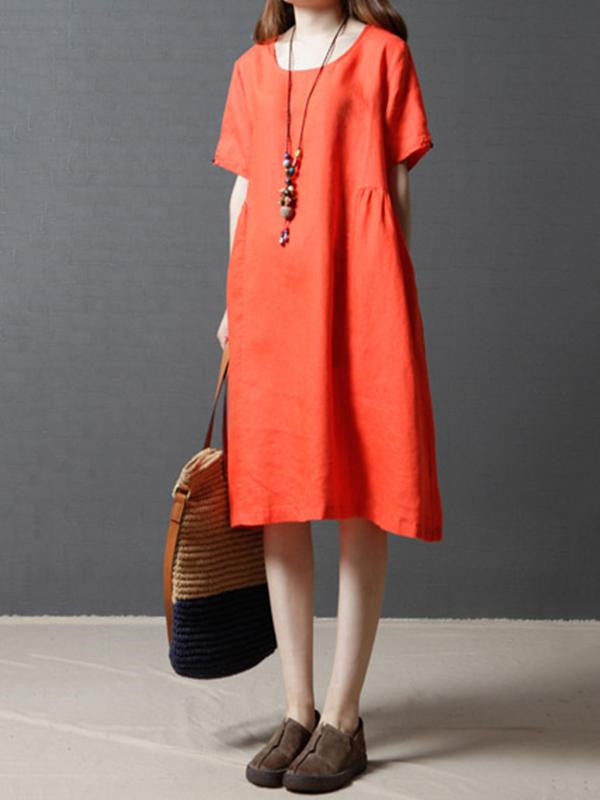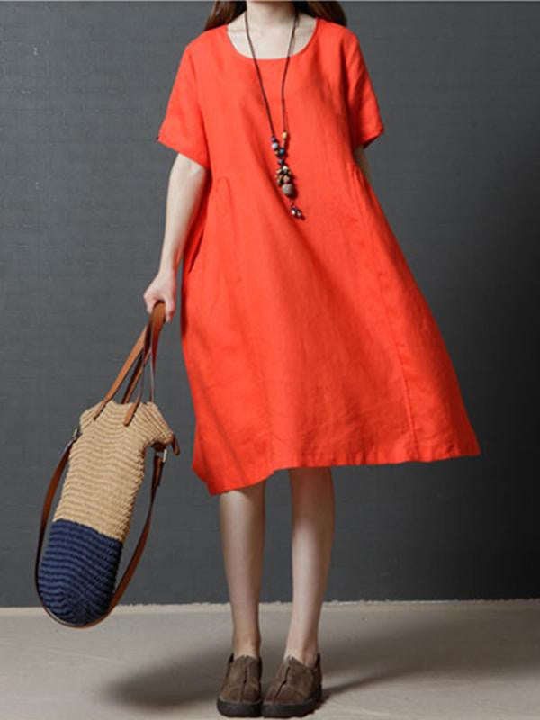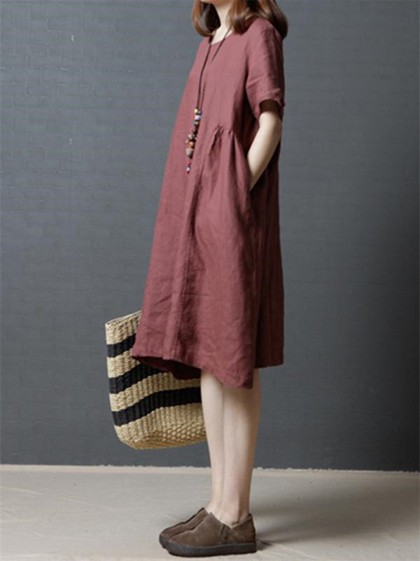 3 Solid Colors Fashionable Ramie Cotton Short Dress