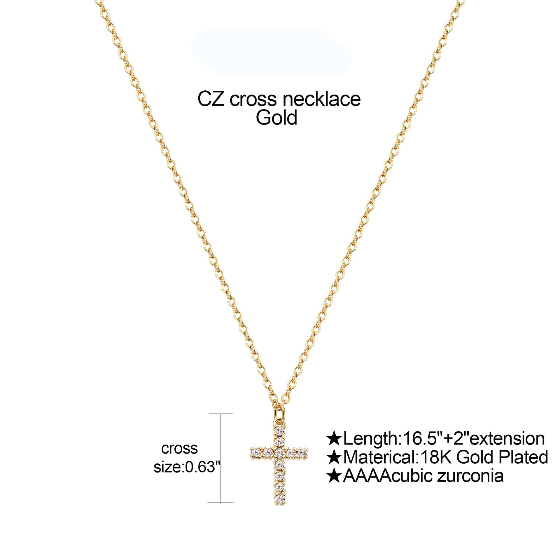 304 Stainless Steel Copper 18K Gold Plated Cross Zircon Copper Necklaces