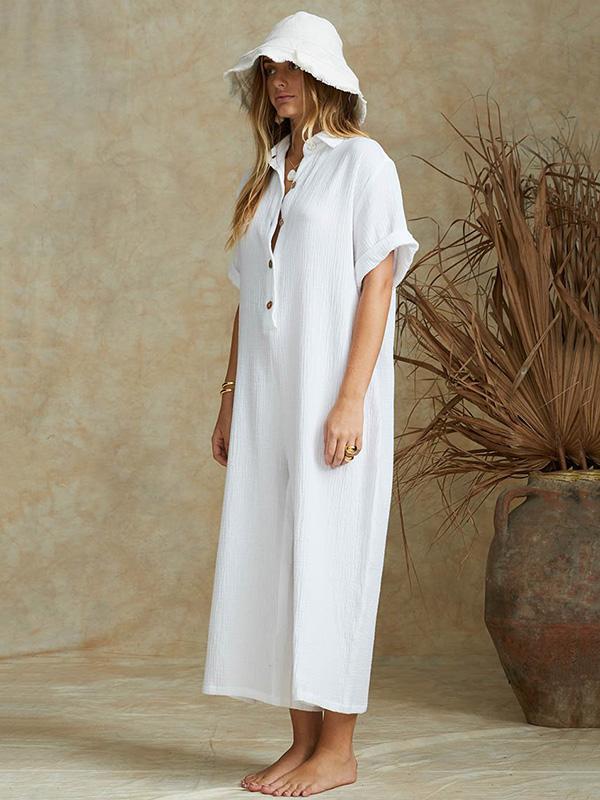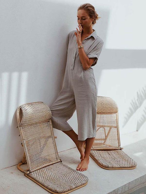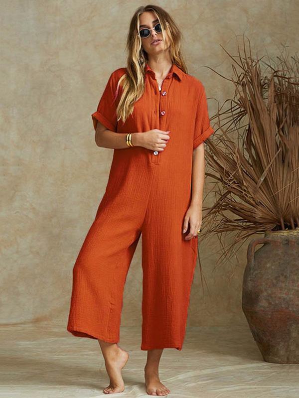 4 Colors Short Sleeves Loose Long Jumpsuits