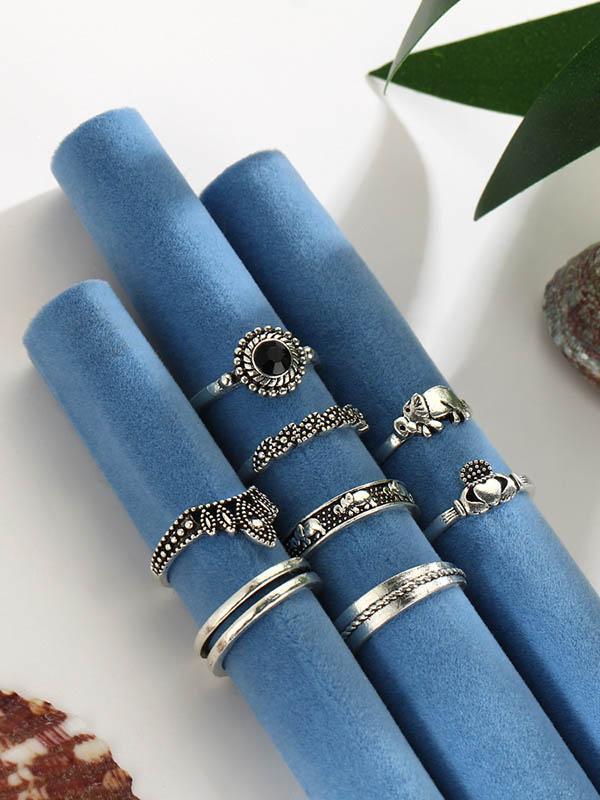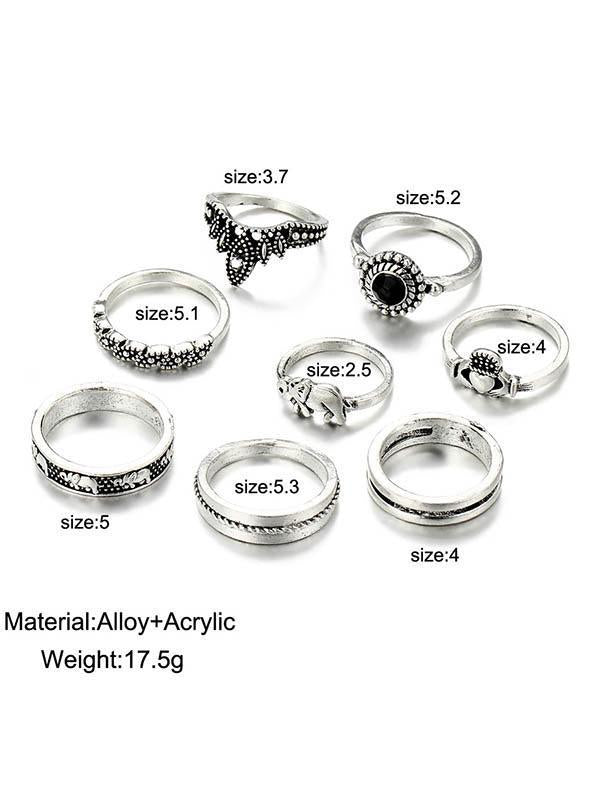 8pcs Vintage Carving Crown Loving Heart Rings Accessories