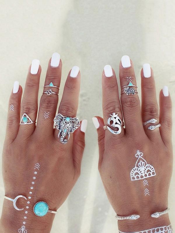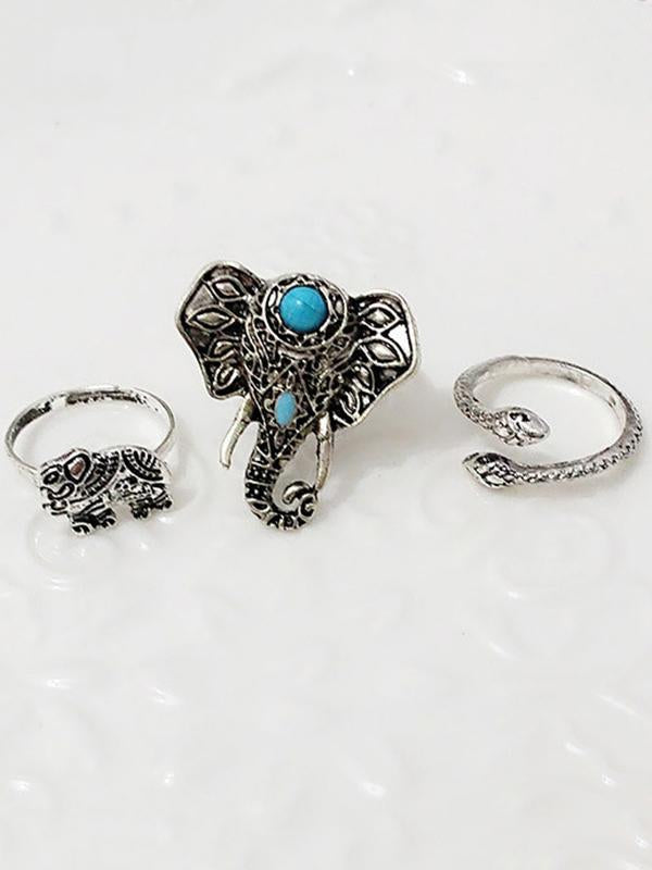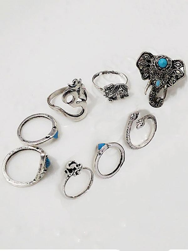 8PCS Vintage Silver Plated Rhinestone Rings Accessories