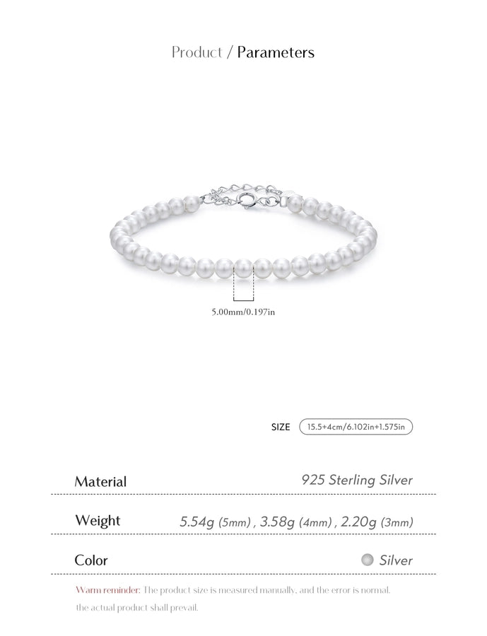 925 Sterling Silver Artificial Pearl Beaded Chain Bracelets IG Style Elegant Lady