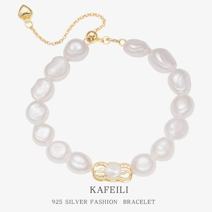 925 Sterling Silver Freshwater Pearl Beaded Chain Bracelets Classic Style